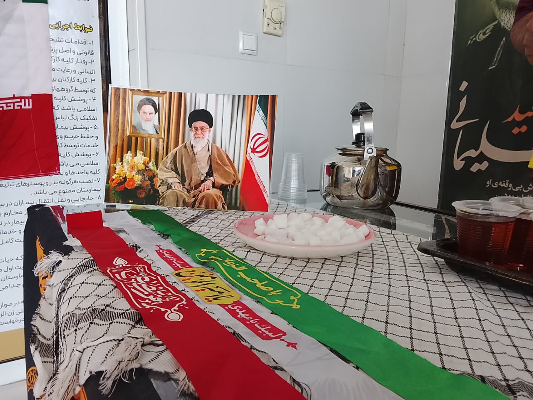 به نقل از مسئول بسیج بیمارستان حمیدرضاملابابائی در این مراسم، یاد و نام آن شخصیت عظیم‌القدر گرامی داشته شد و شرکت‌کنندگان با قرائت قرآن، ذکر صلوات و ابراز ارادت، یاد او را گرامی داشتند. به همین منظور، ایستگاه صلواتی نیز در محوطه بیمارستان برپا گردید و از مراجعه‌کنندگان و حاضرین پذیرایی به عمل آمد. این برنامه در فضایی معنوی، صمیمی و همراه با همدلی برگزار شد و ادای احترام شایسته‌ای به مقام آن چهره ماندگار صورت گرفت.